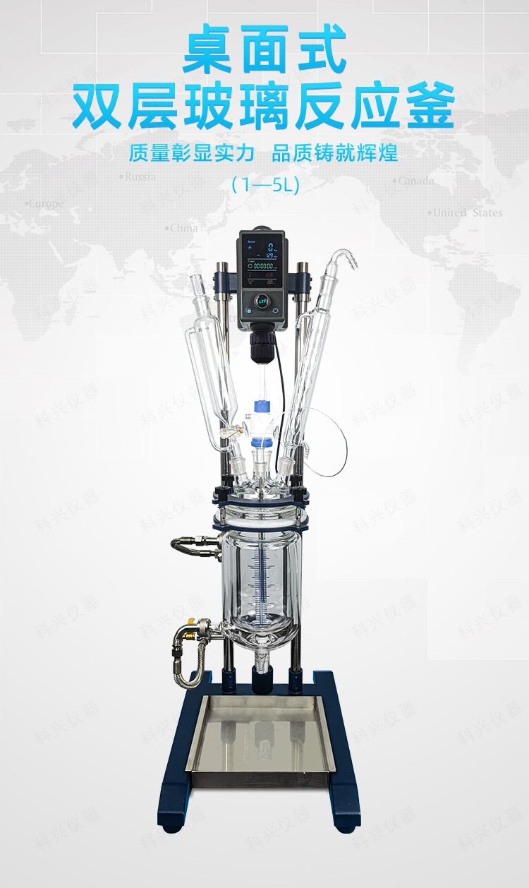 雙層玻璃反應(yīng)釜為雙層玻璃設(shè)計,內(nèi)層放入反應(yīng)溶媒可做攪拌反應(yīng),夾層可通上不同的冷熱源(冷凍液,熱水或熱油)做高溫反應(yīng)(配置相應(yīng)的循環(huán)油浴鍋,溫度可以達到300℃)或低溫反應(yīng)(配置相應(yīng)的低溫冷凍液循環(huán)系統(tǒng),溫度可以達到-80℃),也可選擇加熱制冷一體循環(huán)機;在設(shè)定恒溫條件下,在密閉的玻璃反應(yīng)器內(nèi),可根據(jù)使用要求在常壓或負(fù)壓條件下進行攪拌反應(yīng),并能做反應(yīng)溶液的回流與蒸餾,使用中可以抽成真空,從而做真空反應(yīng)。是現(xiàn)代精細(xì)化工、生物制藥和新材料合成的理想中試、生產(chǎn)設(shè)備。它的這種設(shè)計使試驗更加的安全,更加的方便。