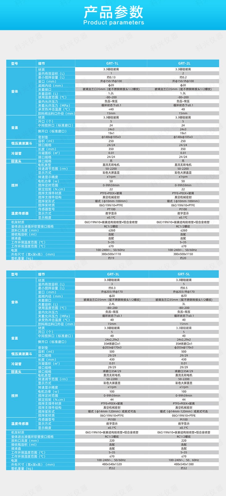| 型號 | GRT-1L | GRT-2L | GRT-3L | GRT-5L | |
